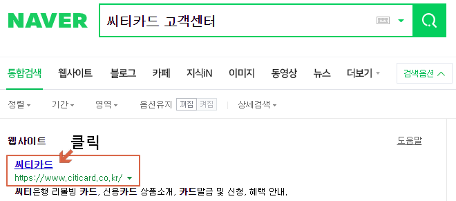 네이버에서 '씨티카드 고객센터'라고 검색을 해봐도 ARS 전화번호를 바로 확인할 수 없습니다. 전화 전에 자신이 물어볼 질문이 대부분 사람들이 궁금해하는 내용일 수도 있으므로, 자주 묻는 질문을 통해 확인하는 방법이 있습니다.