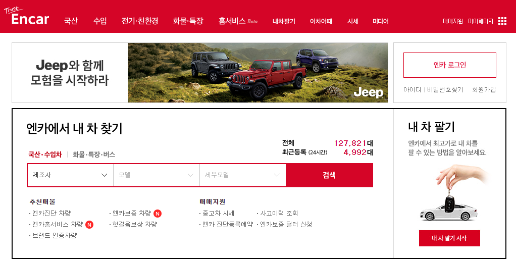 국내 최대 중고차 거래 플랫폼이었던 SK엔카가 출범 21년 만에 SK 브랜드를 떼어냈습니다. 회사명도 SK를 뗀 엔카 닷컴으로 바뀌었는데요. 이제는 Trust Encar로 로고를 만들었습니다. 국내 최대 중고차 판매 관련 사이트였으므로 신뢰성이 가장 우수한 것이 특징입니다.