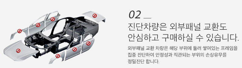 그래서 트러스트 엔카 홈피를 보면 '왜 안심하고 구매할 수 있을까요?'라고 쓰여있습니다. 사고유무를 정확히 진단하고 프레임 손상 유무를 선별합니다. 그리고 외부패널 교환도 정확하게 확인합니다.