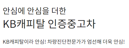 대기업인 KB에서 운영하는 사이트입니다. kb 캐피털에서 인증한 증고 차로 1년/2만 km, 최대 3백만 원까지 보증한다고 합니다.
