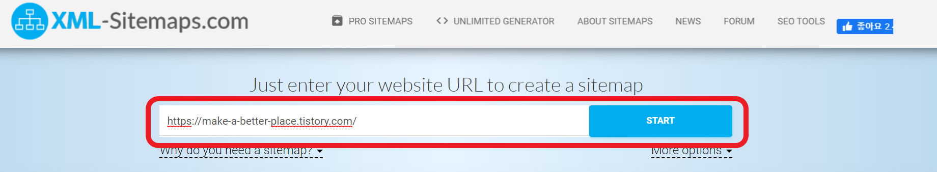 2. 자신의 블로그 주소를 입력하고 Start를 누릅니다.