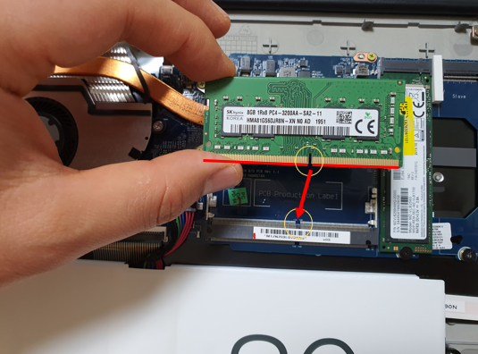 1. 램 장착부 구멍에 잘 맞추어서 사선 아래 방향으로 꼽습니다.