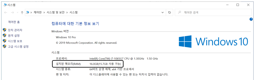 2. 자신의 램 용량이 맞는지 확인하시면 됩니다.