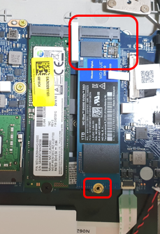 4. 홈에 맞게 NVMe를 끼운 뒤 볼트를 체결합니다.