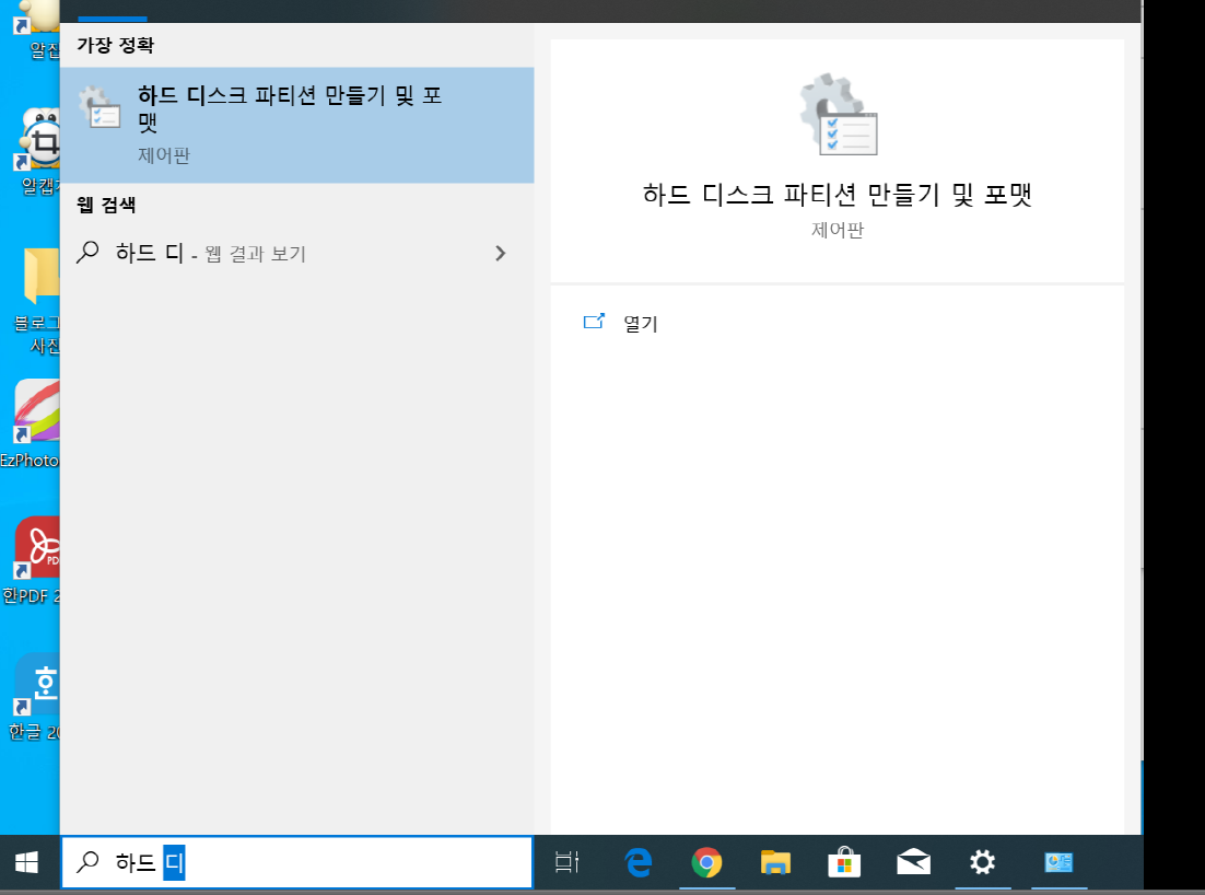3. [하드 디스크 파티션 만들기 및 포맷]을 검색하고 클릭합니다.