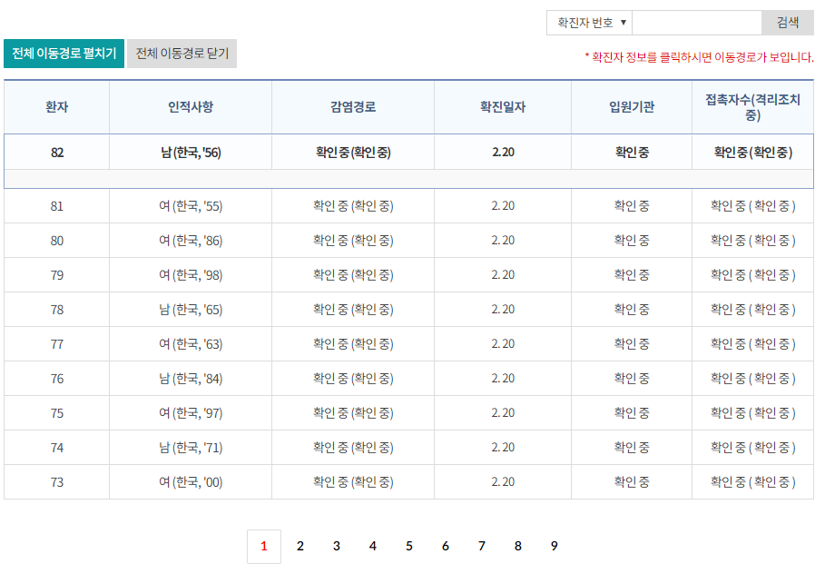 현재 확진자가 시시각각 늘어나고 82번 환자 이후 코로나19 확진자 이동경로 등에 대한 코로나19 국내 현황 정보는 업데이트가 늦어지고 있습니다.