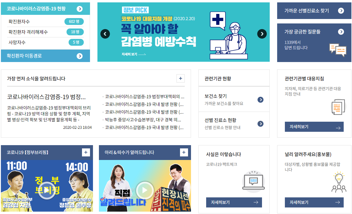 코로나 바이러스(코로나 19) 정보 실시간 확인(공식)
